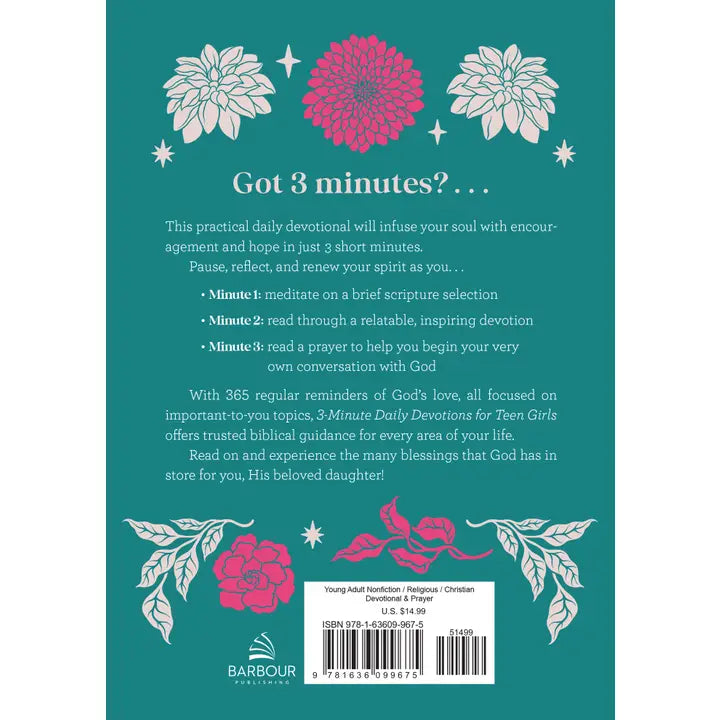 With 365 regular reminders of God’s love, all focused on important-to-you topics, 3-Minute Daily Devotions for Teen Girls offers trusted biblical guidance for every area of your life.