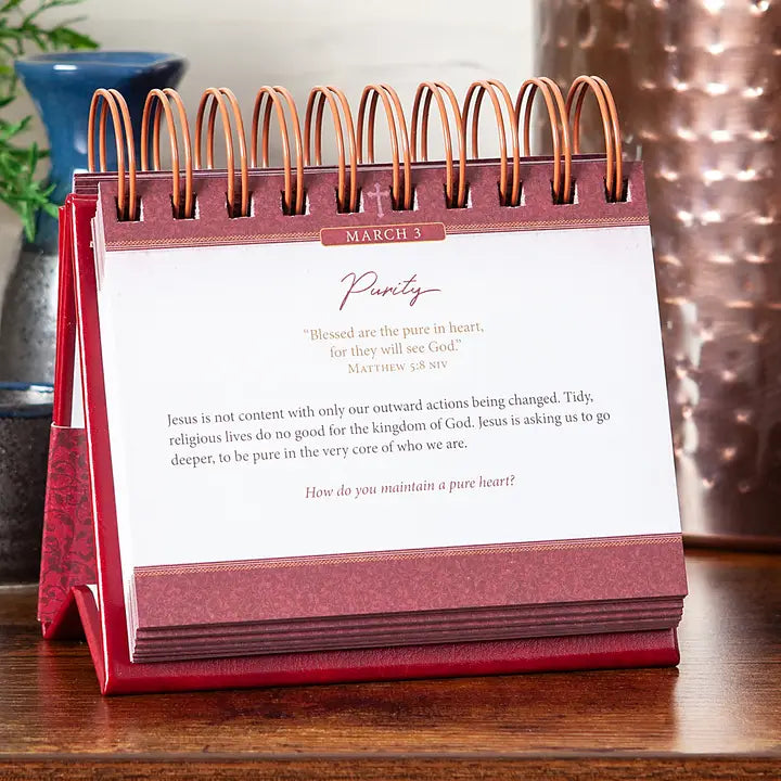 Flip through the pages of this perpetual calendar that highlights a motivating word for each day. Allow this daily word to inspire you as you prayerfully consider the Scripture and devotional thought built around it.