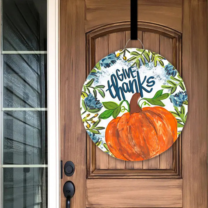 Baxter & Me Blue Give Thanks Pumpkin Floral Door Hanger