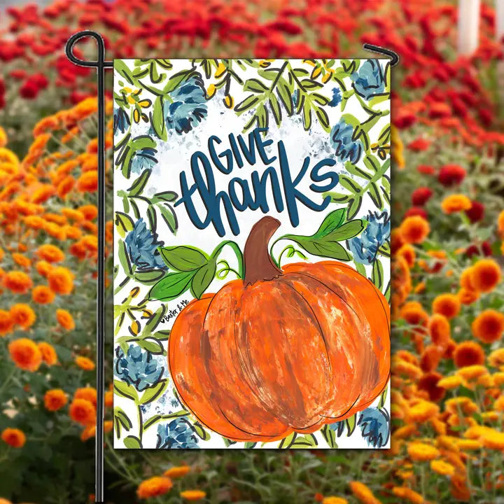 Baxter & Me Blue Give Thanks Pumpkin Floral Garden Flag