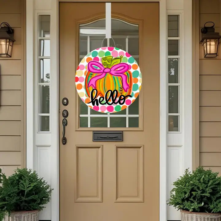 Baxter & Me Happy Dot Pink Ribbon Pumpkin Door Hanger