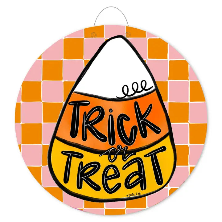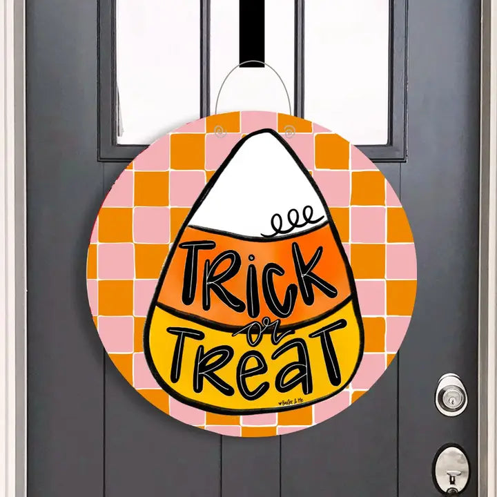Baxter & Me Trick or Treat Candy Corn Door Hanger