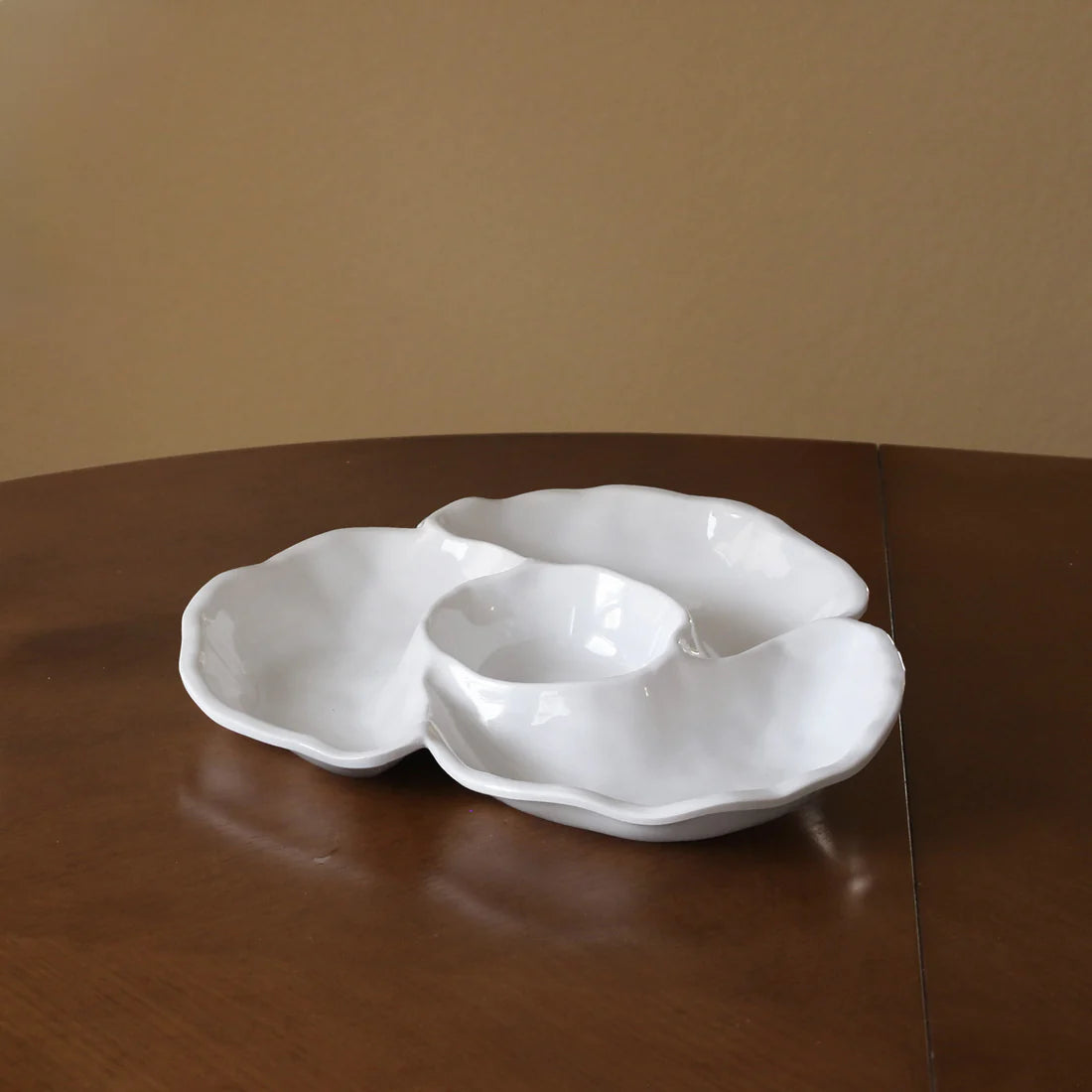 Inspired by the flowing shapes of organic forms, and made of luxury melamine, the VIDA Havana Triple Dip (White) is a beautiful design that speaks to many of today's hottest lifestyle trends. This stylish divided piece triples the serving possibilities and is perfectly suited to small-space living.