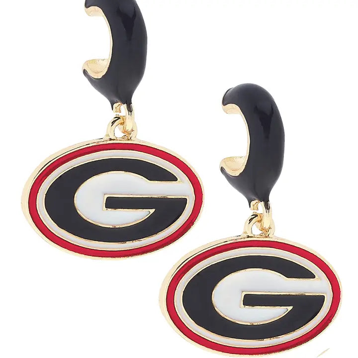 Canvas Style Georgia Bulldogs Enamel Logo Huggie Hoop Earrings in Black