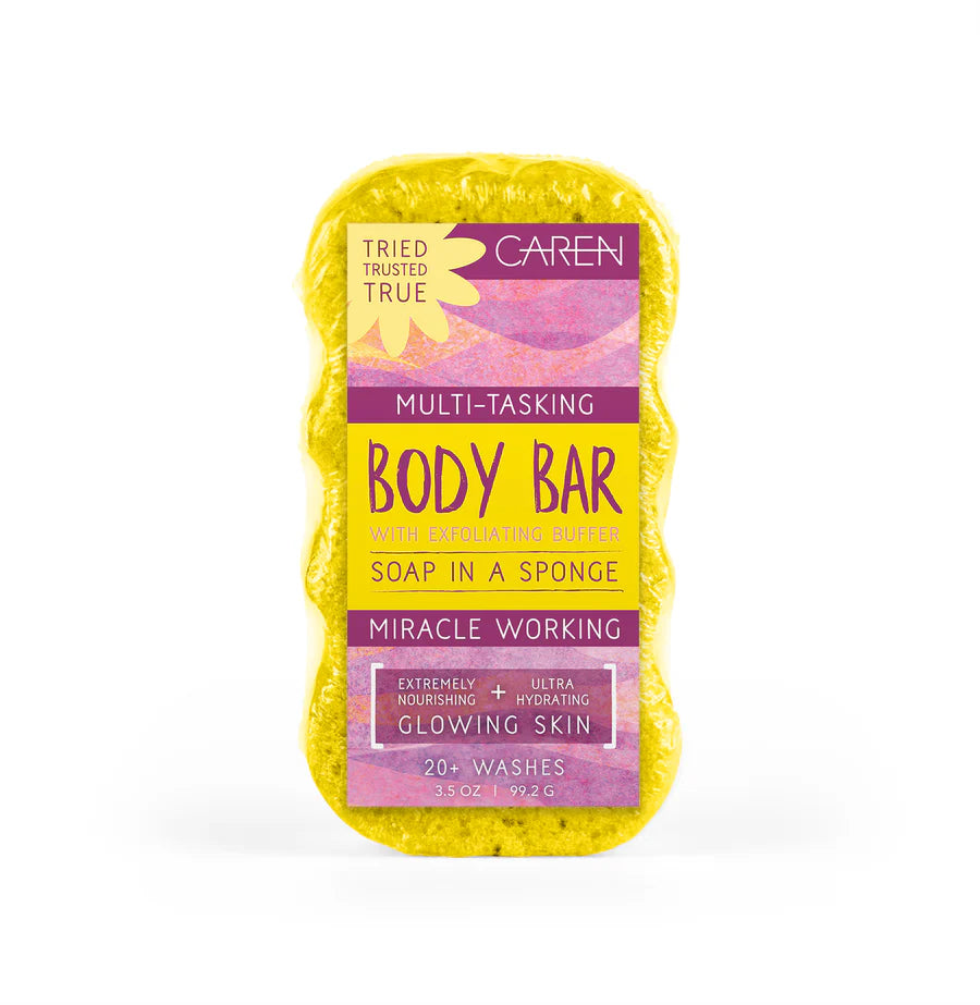 Our Body Bar Sponges include an exfoliating scrubby and are infused with our luxurious body cleanser enriched with Aloe Vera, olive oil, lemon grass, sea kelp extracts, and an abundance of creamy that ensures the ultimate in pampering. Transform an ordinary shower or bath with this all-in-one skin cleanser and body buffer that cleans and exfoliates simultaneously. Perfect travel companion! Reload, refill, and replenish your super star Body Bar Sponge with our coordinating super star Body Wash.Â