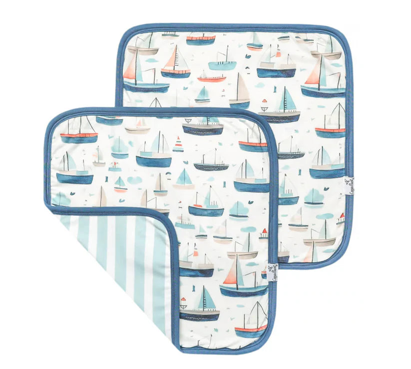 Made from the same buttery-soft fabric as Copper Pearl’s legendary swaddles, each blanket is perfectly sized for tiny hands, big hugs, and boatloads of snuggles. With two in a set, you’ve always got a backup when one sails off with the laundry!