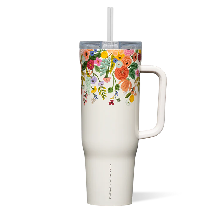 Let the joyrides commence. Cruiser, our largest straw cup to date, keeps 40 oz of your favorite beverage cold for up to 20 hours, allowing you to enjoy everyday adventures without giving your hydration needs a second thought. It features an exclusive dual-function sip + straw spill-proof lid, a comfy soft-grip handle, and a stay-put silicone bottom to keep it upright no matter your destination or how many stops you take on the way. Now available in three of Rifle Paper Co.'s iconic floral patterns.Â