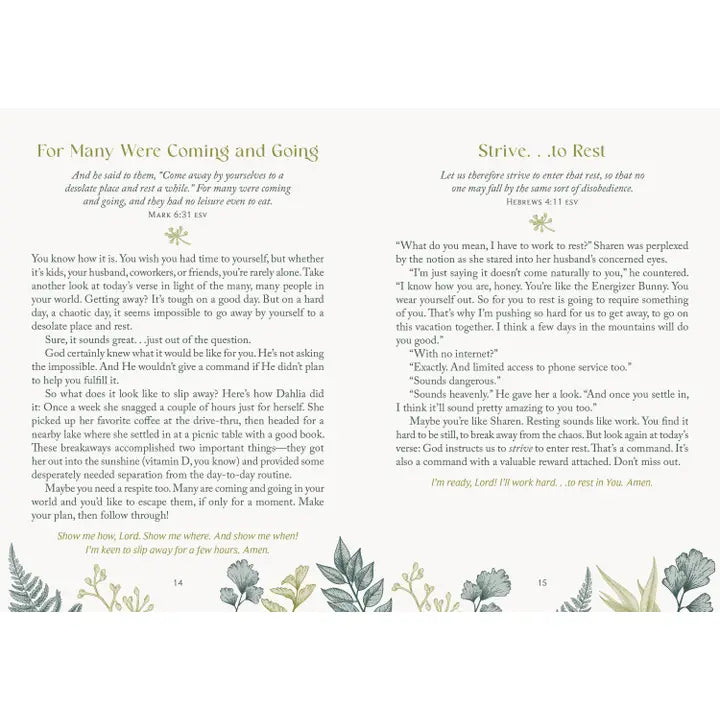 Any time your beautiful soul craves peace and stillness, you'll find just the encouragement, inspiration, and biblical truth you need in this delightful devotional. These 180 refreshing readings touch on topics most important to you. Read on and rest your soul in the heavenly Father's comforting embrace.