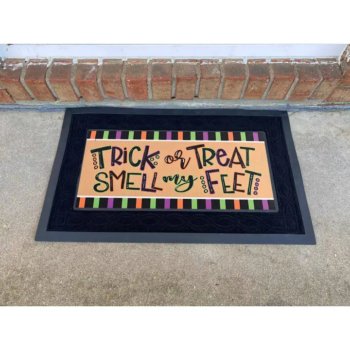 Attractive and inspiring, this doormat insert fits perfectly into the doormat base to create a look you will love; this doormat insert fits snugly side to side, with a little gap on the top and bottom, so as not to create a tripping hazard. Made with mildew-resistant polyethylene terephthalate fibers, it helps to quickly clean and dry shoes. Rubber backing holds insert firmly in the base. Size of insert is approximately 22x10. Insert only - doormat base tray sold separately.