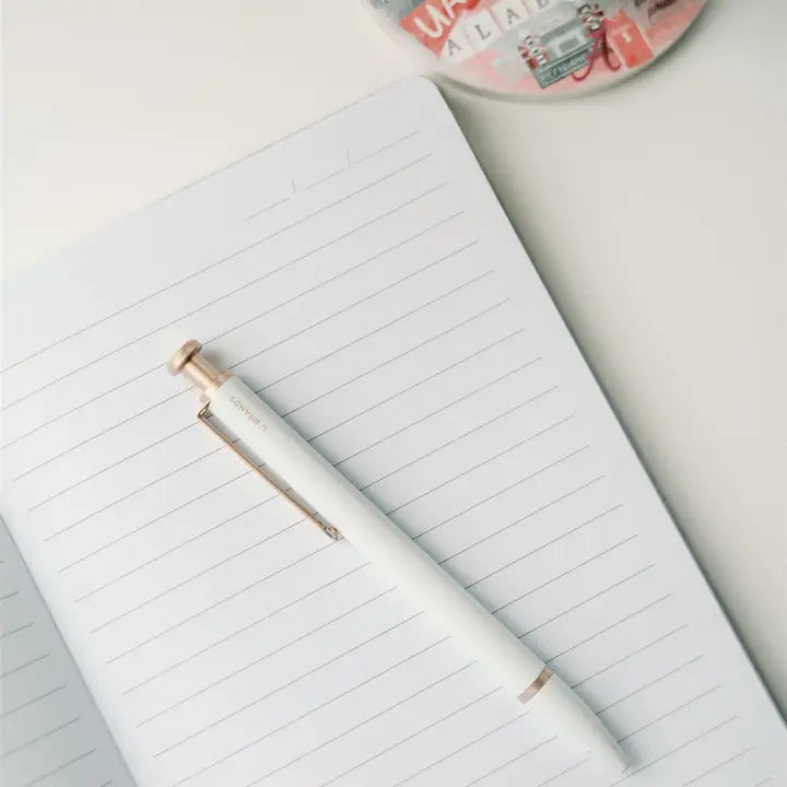 The journal features lined pages and a ribbon bookmark.