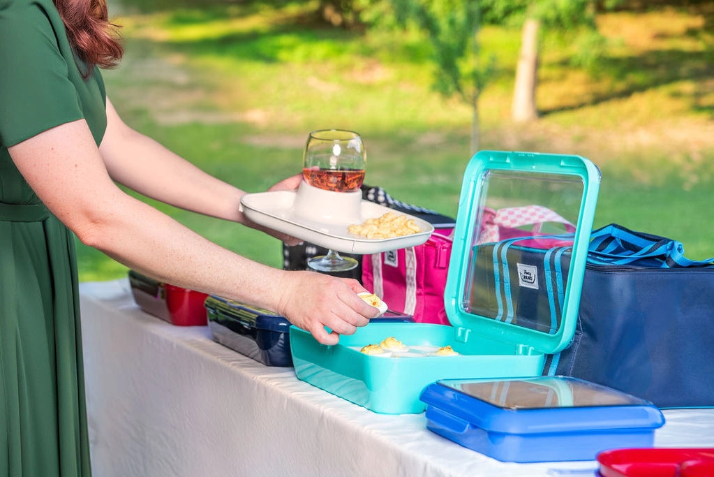 These 10" reusable plates feature a built-in cupholder that fits stemware, cans, bottles, and more. The raised rims help prevent spills, making them ideal for eating on-the-go or serving appetizers and condiments.
