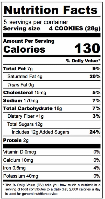 Contains: wheat, milk, eggs, soy. Made in a dedicated peanut, tree nut, and sesame free facility. No seed oils.