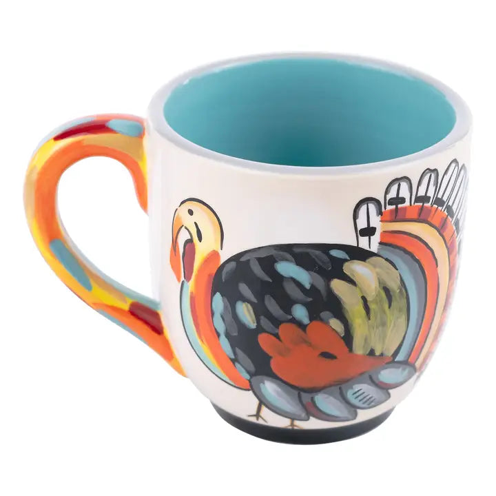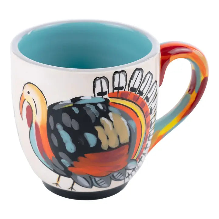 Celebrate Thanksgiving in style with the Colorful Turkey Feathers Mug. Featuring a vibrant design of a turkey’s feathers in stunning colors, this ceramic mug is perfect for enjoying your favorite seasonal beverages like hot cider, coffee, or tea. Whether you're hosting a holiday gathering or enjoying a quiet moment, this mug adds a festive touch to your celebration. It also makes a great gift for Thanksgiving hosts, friends, or anyone who loves the spirit of the season.