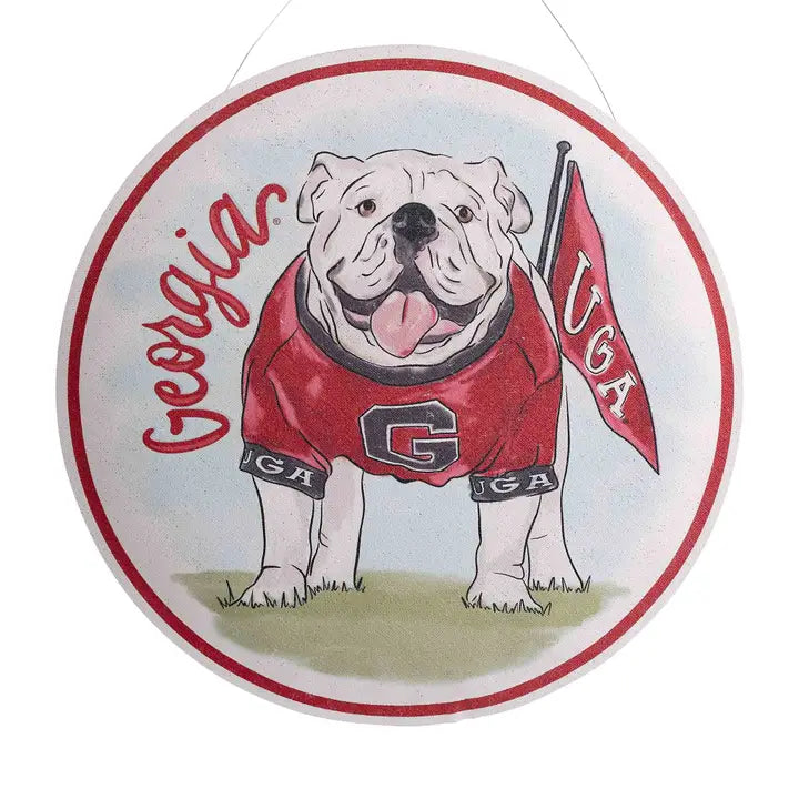Add red and black flair to your space with the Georgia Mascot Retro Burlee. Featuring vintage-inspired design and bold collegiate style, this hanging accent is ideal for tailgates, front doors, or gifting to University of Georgia fans. A fun and spirited way to say Go Dawgs! * Original Design