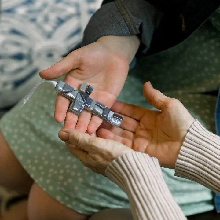 The glass cross hangs from a white satin ribbon and is suitable for display year-round on a knob, as a suncatcher, car charm, or Christmas Ornament. It can be displayed on a table, nightstand, or shelf or used as a book or bible marker. Gift-boxed in white 5.5x5.5 clear top box with Made Like You sentiment and art.