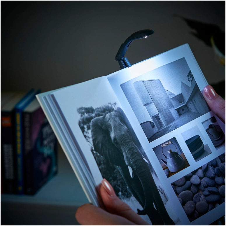 Clips onto your book so you can carry on reading when it's dark. Still the slimmest, trimmest little book light you can buy. Perfectly formed and curved in all the right places, this award-winning little beauty is a consistent best seller.