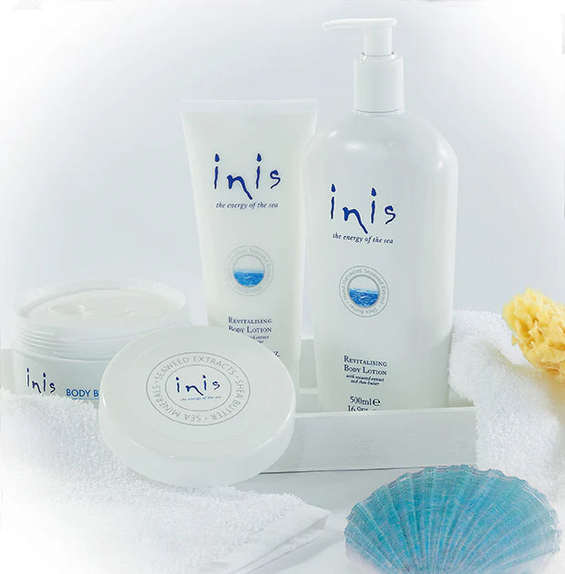 Enriched with deep moisturizing shea butter and seaweed extracts - packed with vitamins, minerals and trace elements that can help nourish the skin. Smooth on after a bath or shower to seal in moisture and leave your skin smoothed and scented with 'Inis Energy of the Sea' - the sparkling scent that makes you feel happy!