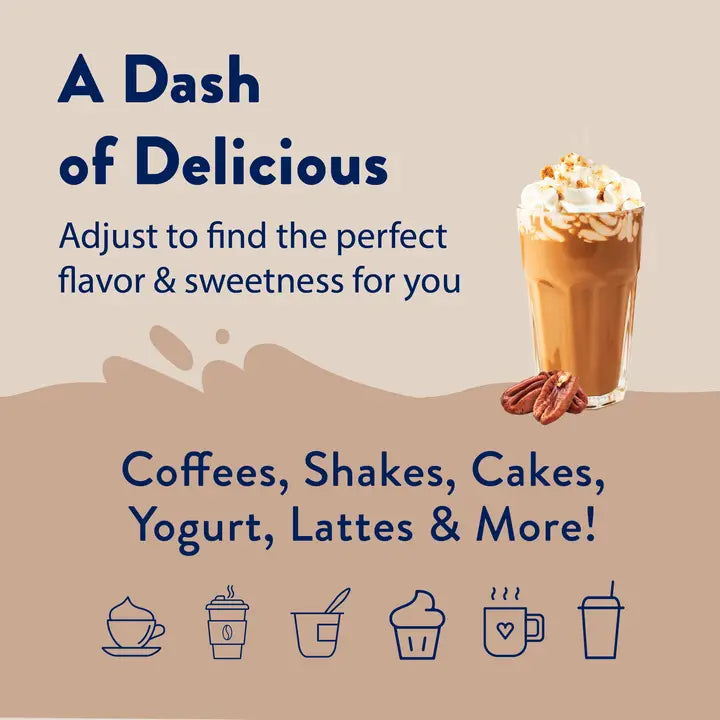 Tempt your taste buds with the decadent taste of smooth brown butter, roasted pecans, and a hint of caramelized brown sugar. This beloved classic adds indulgent, yet guilt-free flavor to coffees, lattes, protein shakes, baking, oatmeal, or just about anything.