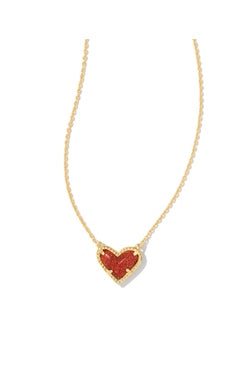 KENDRA SCOTT ARI HEART SHORT PENDANT NECKLACE GOLD ORANGE GOLDSTONE
