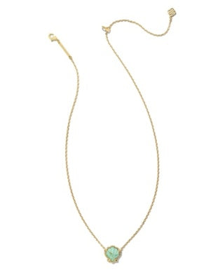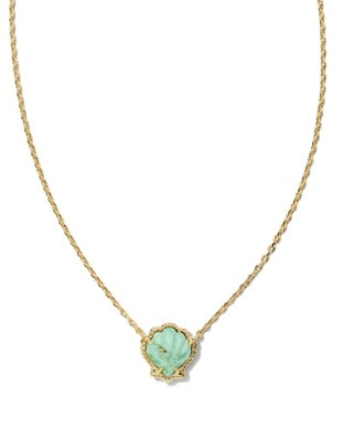 KENDRA SCOTT BRYNNE SHELL SHORT PENDANT NECKLACE GOLD SEA GREEN CHRYSOCOLLA