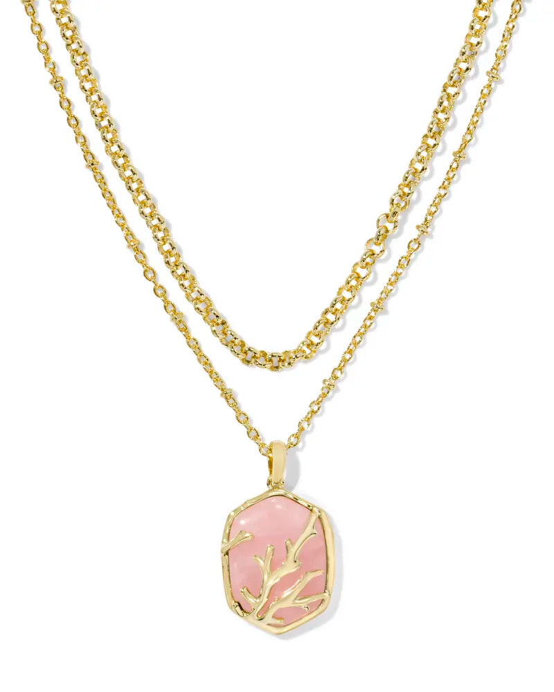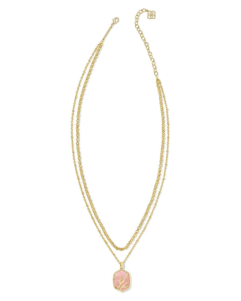 Kendra Scott Daphne Gold Coral Frame Multi Strand Necklace in Rose Quartz