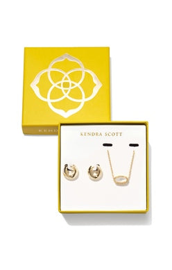 Want to give a gift that’s bound to be a favorite? The Elisa and Mikki Gold Gift Set in Ivory Mother-of-Pearl features two of our bestsellers that you can wear together, style separately, and get so many compliments wearing. Plus, it’s pre-wrapped and exclusively priced for truly effortless gifting. Set includes the Elisa Pendant Necklace and Mikki Huggie Earrings.