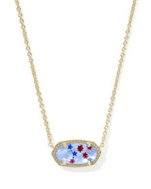 KENDRA SCOTT ELISA PENDANT NECKLACE GOLD RED WHITE BLUE STAR ILLUSION