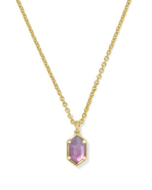 KENDRA SCOTT HALLIE SHORT PENDANT NECKLACE GOLD PURPLE WATERCOLOR ILLUSION