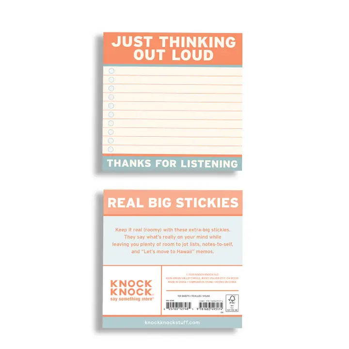 Knock Knock Thinking Out Loud Large Sticky Notes (4 X 4-inches)