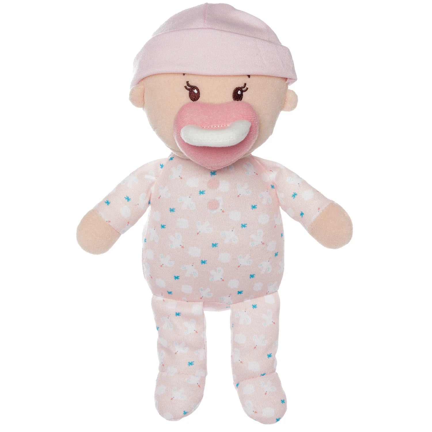 The ultimate first baby doll set! Includes a 100% soft doll that offers magnetic pacifier play, a sittable design, and a soft bassinet.