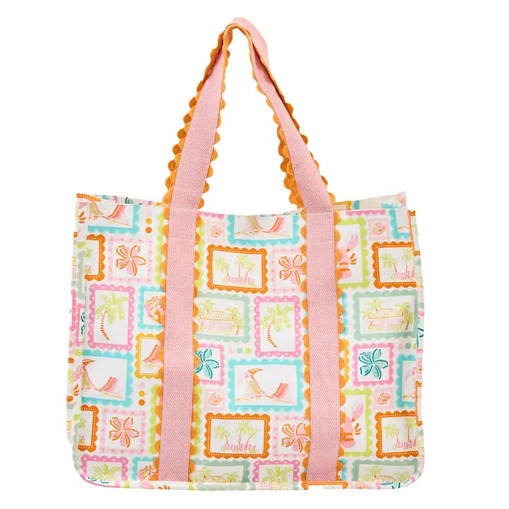 Magnetic snap closure - 1 exterior pocket and 1 zippered interior pocket - 100% cotton canvas - laminated - 19" x 15" x 7"