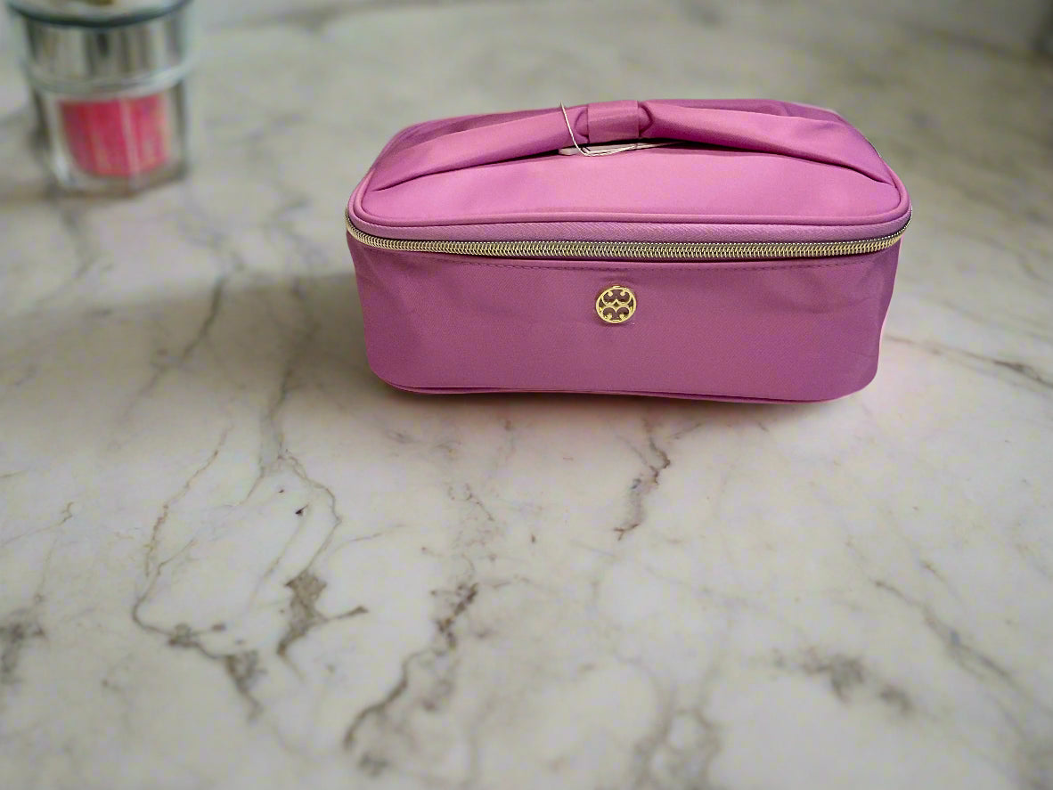 The Mary Square Pink Floral Block Make Me Blush cosmetic bag in solid pink offers a sleek and sophisticated look while maintaining practical functionality. Its durable construction protects your cosmetics securely, and the compact design makes it easy to carry for daily use or travel. The solid pink finish provides a timeless elegance, ideal for organizing your beauty essentials with style and reliability. Perfect for users seeking both simplicity and quality in their cosmetic storage.