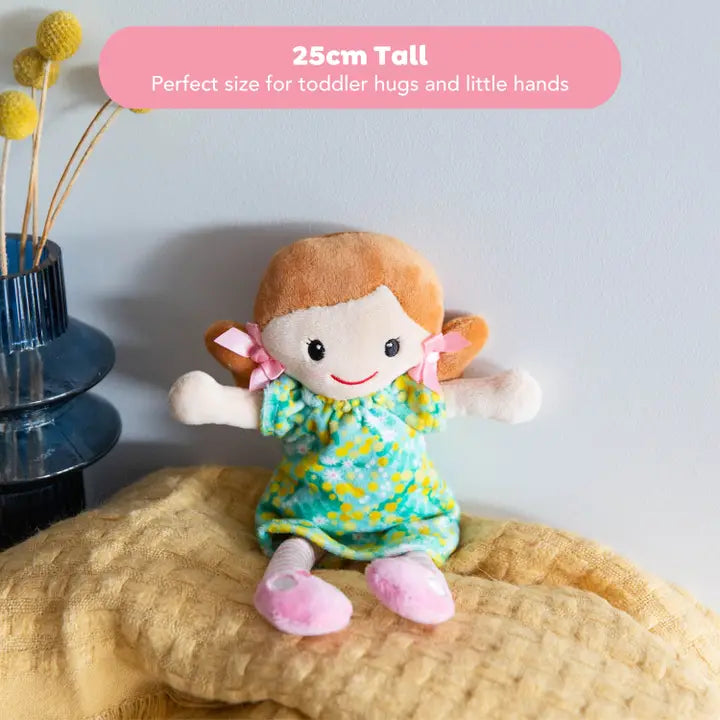 Perfectly sized at 10" tall, Nellie is ready to meet her new best friend. Vintage-styled from super soft and snuggly Velboa fabric, this gorgeous doll is destined to be a favorite. With her dress inspired by the Australian yellow wattle and bearing the celebrated Australian name, Nellie, she will look gorgeous on display on a bed or nursery bookshelf and even better in a little oneβs arms. Ages 0+ Meet the girl gang- Charlie, Ava, Nellie and Matilda
