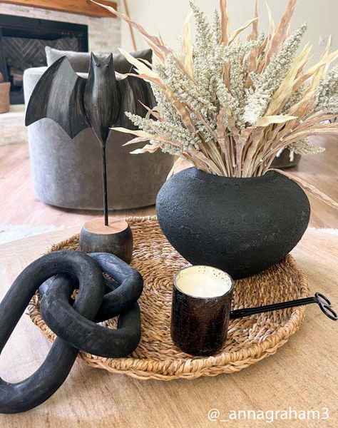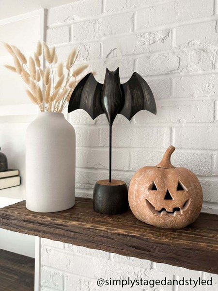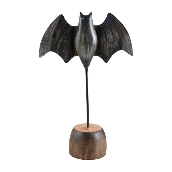 The Bat Tin Sitter is a unique and eye-catching character sitter that will add a touch of whimsy to any space. Crafted with a mango wood base, this tin character sitter stands at a height of 14 1/4" and has a width of 10". Its intricate design and attention to detail make it a standout piece that is sure to spark conversation. Made from high-quality tin, this sitter features a bat design that is both playful and charming. The tin material gives it a rustic and vintage feel, adding character to any room. The bat's wings are delicately crafted, showcasing the craftsmanship and artistry that went into creating this piece. The mango wood base provides a sturdy and durable foundation for the sitter, ensuring that it will remain stable wherever it is placed. The natural grain and warm tones of the mango wood add warmth and richness to the overall aesthetic of the sitter. Whether displayed on a shelf, mantel, or tabletop, the Bat Tin Sitter is sure to make a statement. Its unique design and combination of materials make it a versatile piece that can complement a variety of decor styles, from modern to eclectic. Add a touch of whimsy and personality to your home with the Bat Tin Sitter. Its charming design and quality craftsmanship make it a must-have for any art lover or collector.