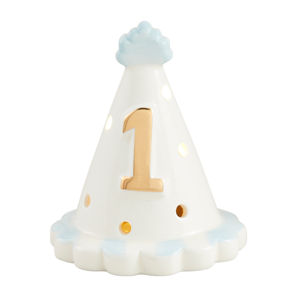 Celebrate your little one's first birthday with this charming Blue 1st Birthday Light-Up Sitter. Crafted from high-quality ceramic, this delightful cake sitter features an LED light-up design that adds a magical touch to the festivities. When activated, it plays the classic "Happy Birthday" song, creating a joyful atmosphere for the special day. Compact and convenient, it measures 3 inches by 2 1/4 inches in diameter, making it a perfect fit for any birthday cake. Made from durable dolomite, this sitter is designed to be a cherished keepsake. Plus, it comes with batteries included, so it's ready to use right out of the box. Make your child's first birthday unforgettable with this enchanting light-up sitter.