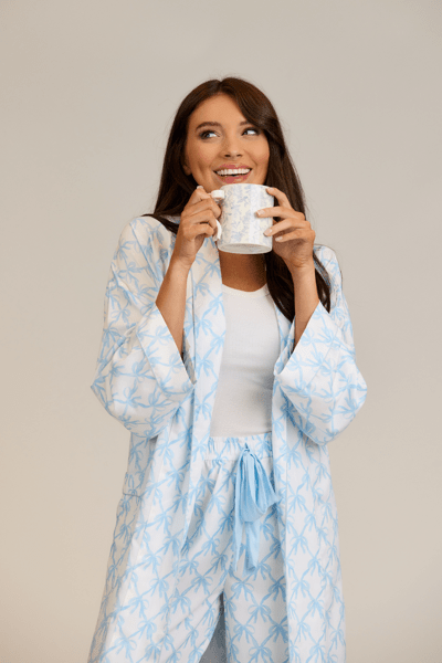 Experience ultimate comfort and style with our Blue Bow Pajama Pants, crafted from 100% polyester for a soft and smooth feel against your skin. These pajama pants are designed with elegant piping detail that adds a touch of sophistication to your loungewear collection. The elasticated waist ensures a snug and adjustable fit, complemented by a charming bow tie for an extra dash of flair. With an inseam measuring approximately 29 inches on size small, these pants offer a relaxed fit that is perfect for unwinding at home. Available in three sizes—small, medium, and large—each size is tailored to provide the perfect balance of comfort and style. Whether you're lounging around the house or getting ready for a cozy night's sleep, these pajama pants are a must-have addition to your wardrobe.