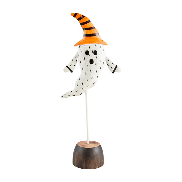 The Ghost Tin Sitter is a unique and eye-catching decorative piece that is sure to add a touch of charm to any space. Crafted with meticulous attention to detail, this tin character sitter features a playful ghost design that is both whimsical and delightful. The Ghost Tin Sitter stands at an impressive height of 18 inches, making it a prominent and noticeable addition to your home decor. Its slender and elongated shape, measuring 7 1/2 inches in width, allows it to fit seamlessly into any nook or cranny, adding a touch of personality wherever it is placed. The tin construction of this sitter ensures its durability and longevity, making it a lasting investment for your home. The mango wood base provides a sturdy and stable foundation, ensuring that the Ghost Tin Sitter remains securely in place. Whether displayed on a shelf, mantel, or tabletop, the Ghost Tin Sitter is sure to capture the attention of all who see it. Its charming ghost design is perfect for Halloween or year-round enjoyment, adding a whimsical and playful touch to your space. Add a touch of enchantment to your home decor with the Ghost Tin Sitter. Its unique design, durable construction, and mango wood base make it a must-have for any lover of quirky and delightful decorations.