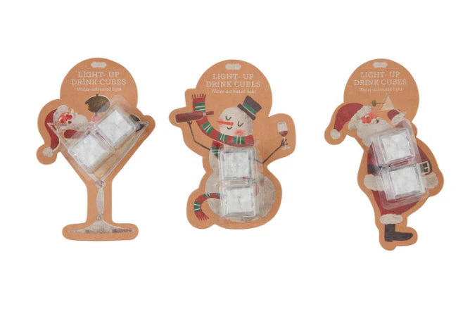 Mud Pie - Holiday Glow Ice Cubes are a delightful addition to your festive gatherings, featuring 1 x 1 inch light-up ice cubes that bring a whimsical touch to any drink. Available in three charming packaging styles—Santa, Snowman, and Martini Glass—this set includes two LED light-up, water-activated plastic drinking cubes that illuminate your beverages with a vibrant glow. Perfect for holiday parties or as a unique gift, Mud Pie - Holiday Glow Ice Cubes enhance the celebratory atmosphere while providing a fun and functional accessory for your drinks.