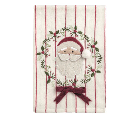 Appliquéd cotton hand towel with embroidery, bead and velvet bow detail.