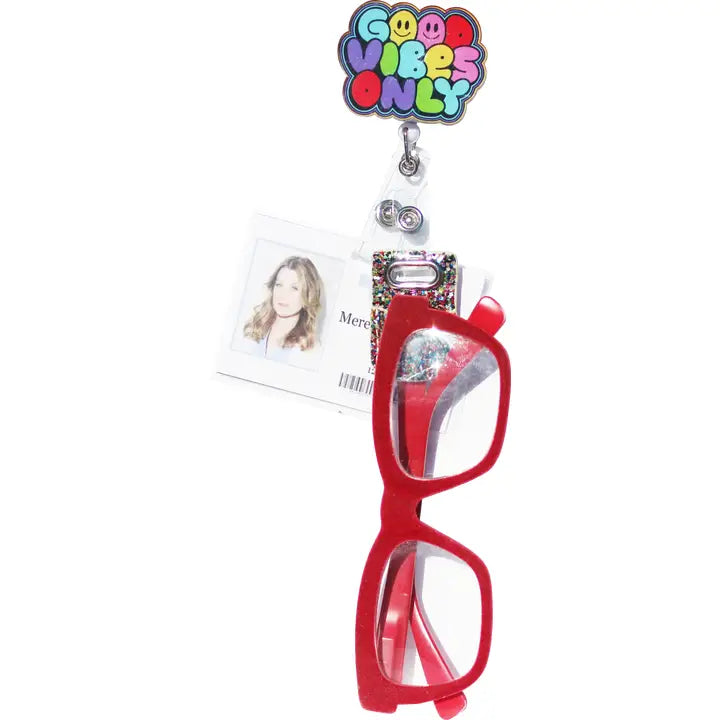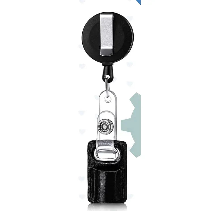 Pen Pals are a super-nifty, lightweight device made from durable PU leather material that can be used in several handy ways! - Simply thread the vinyl strap of a badge reel through the durable metal slot - Use to hold a pen, eyeglasses, scissors - Available in 5 colors: Pink, Blue, Multi, Black, and Champagne