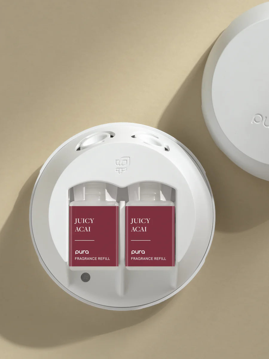 Pura’s odor-reducing technology actively removes bad odors with a method that is clean and safe for your family. This technology reduces unwanted odors and replaces it with premium fragrance in a proprietary way. For best results, we recommend allowing 30 minutes for Open Air Tech™ to activate.
