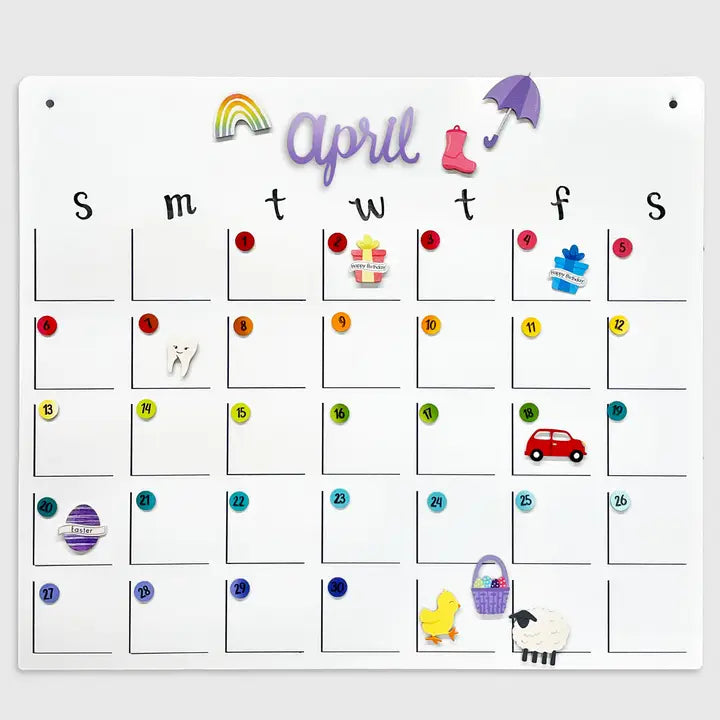 Use with the Roeda dry erase calendar, any magnetic calendar, a printed paper calendar on a Roeda easel, or even your fridge!