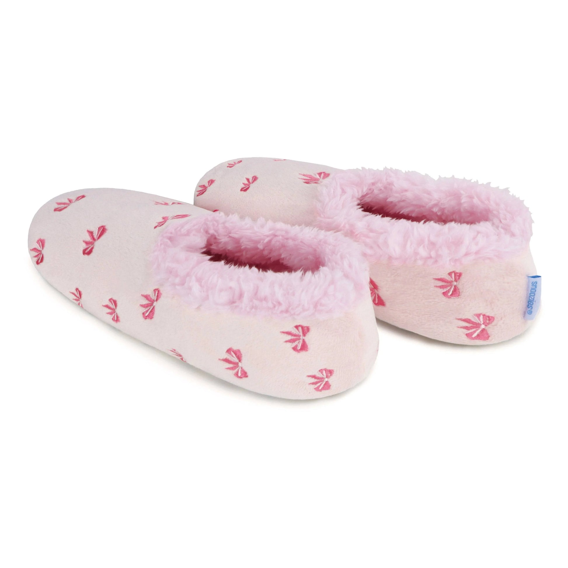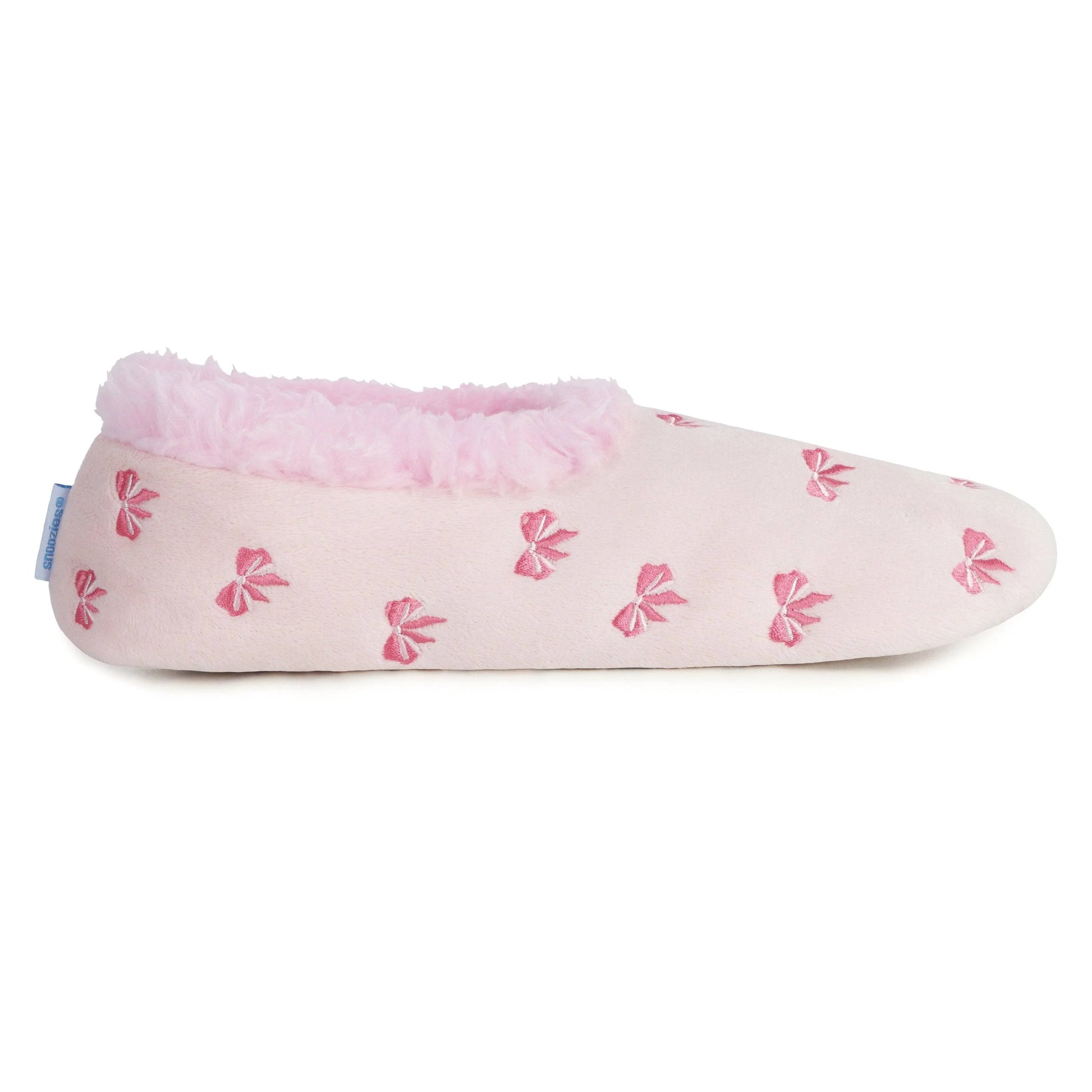 Snoozies! Womens Embroidered Bow-Utiful Slipper With Memory Foam Sole Light Pink