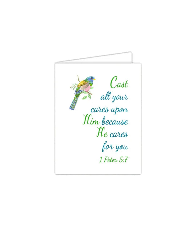 Standing on the Word Notecard Bird with verse: 1 Peter 5:7 cast your cares