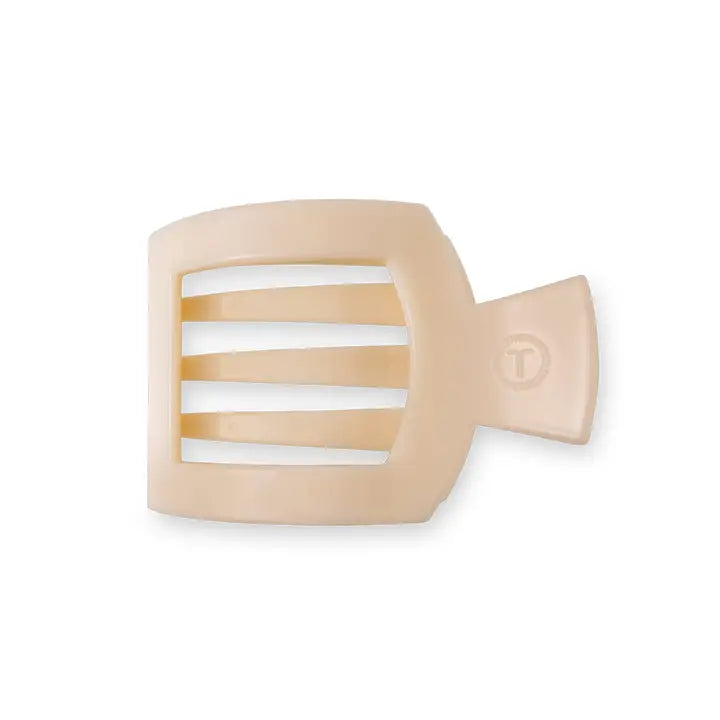 Unwind and relax with the new TELETIES Flat Square Hair Clip! Designed with our same innovative material that is nearly unbreakable, this clip is perfect for lying down, doing yoga, or simply laying back without discomfort. The small size is suitable for thin to medium hair types, whether worn up or half-down. The small size is 3 inches long.