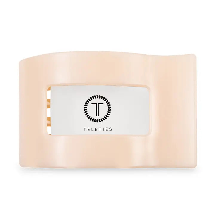 Lean back and relax - comfort just got a new shape. Introducing the TELETIES Almond Beige Large Rectangle Flat Hair Clip, the newest addition to our best-selling Flat Clip Collection. Joining the original Round and Square styles, this elevated rectangular design offers the same flat-back comfort and stronghold TELETIES is known for - now with a sleek, modern style.