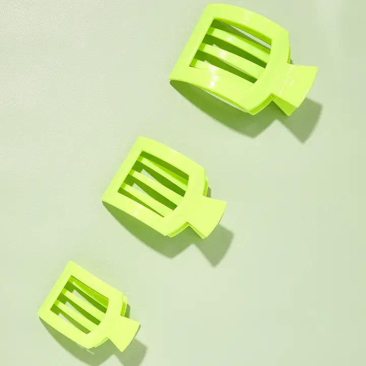 Lay flat and relax with the new TELETIES Summer Brights Large Flat Square Hair Clip in Green. This hair clip is designed to allow you to lay back flat, do yoga, or sit comfortably in a seat with a headrest, and it is made with the same material that is nearly unbreakable.
