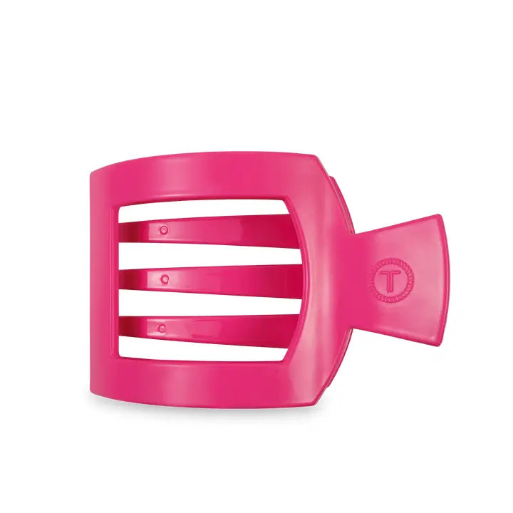 Lay flat and relax with the new TELETIES Tropical Punch Large Flat Square Hair Clip in Pink. This hair clip is designed to allow you to lay back flat, do yoga, or sit comfortably in a seat with a headrest, and it is made with the same material that is nearly unbreakable.