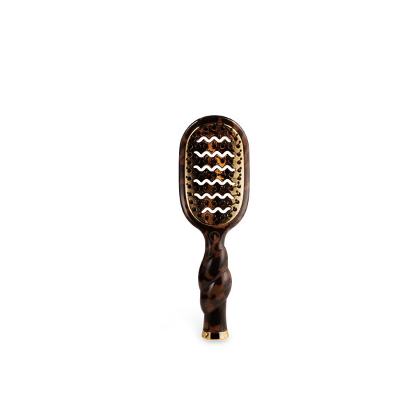 The Mini Vented Hair Brush in Tortoise is designed for fast, easy styling on-the-go. Its vented design supports airflow and even heat distribution, making it a great option for short hair and travel styling when using heat tools, like a mini hair dryer brush for travel.