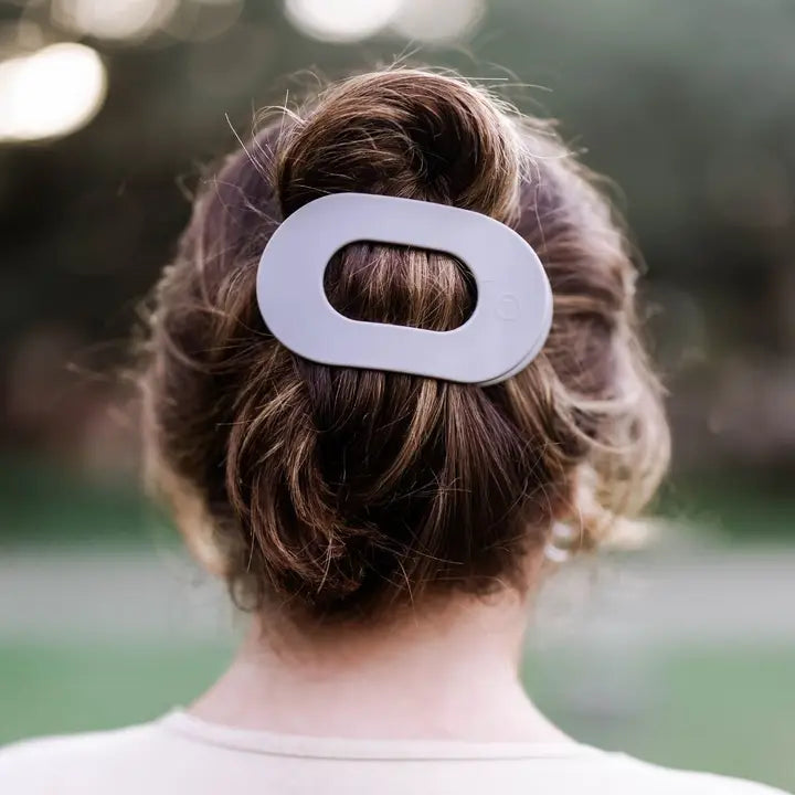 Unwind and relax with the new TELETIES Flat Round Hair Clip! Designed with our same innovative material that is nearly unbreakable, this clip is perfect for lying down, doing yoga or simply laying back without discomfort.